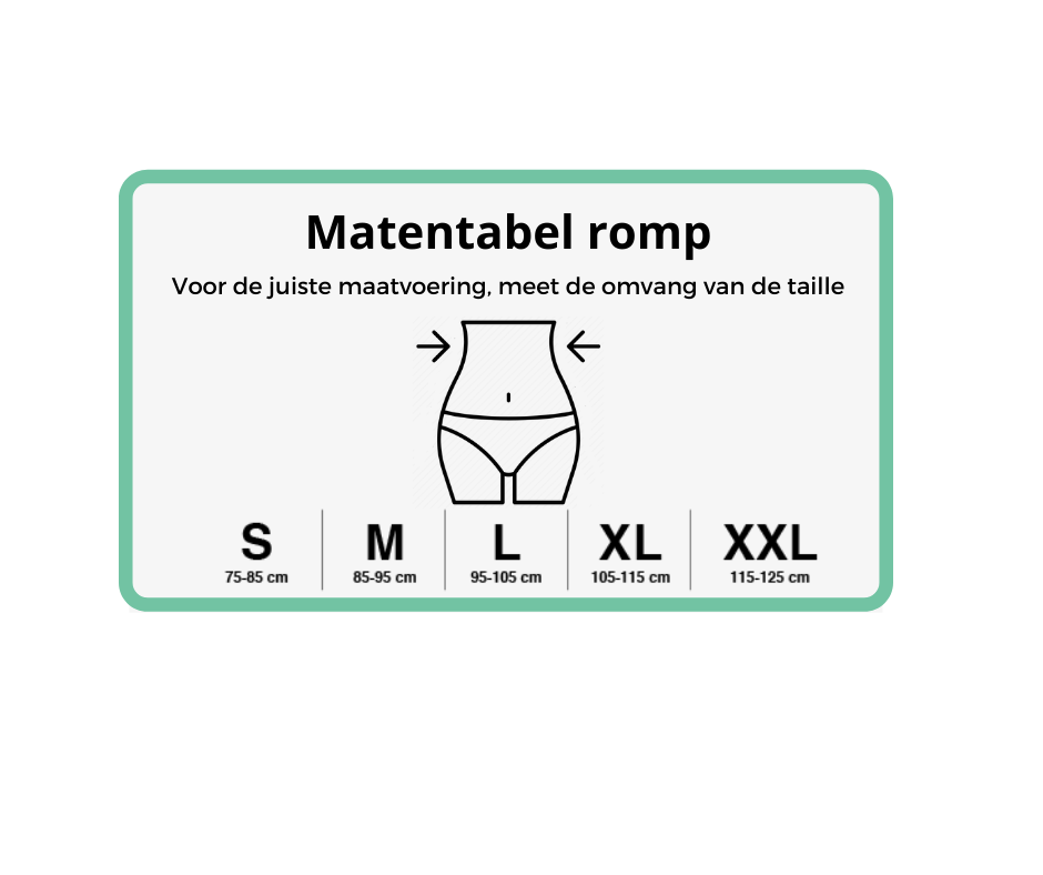 Kies de juiste maat door het op meten van de taille (zie afbeelding)